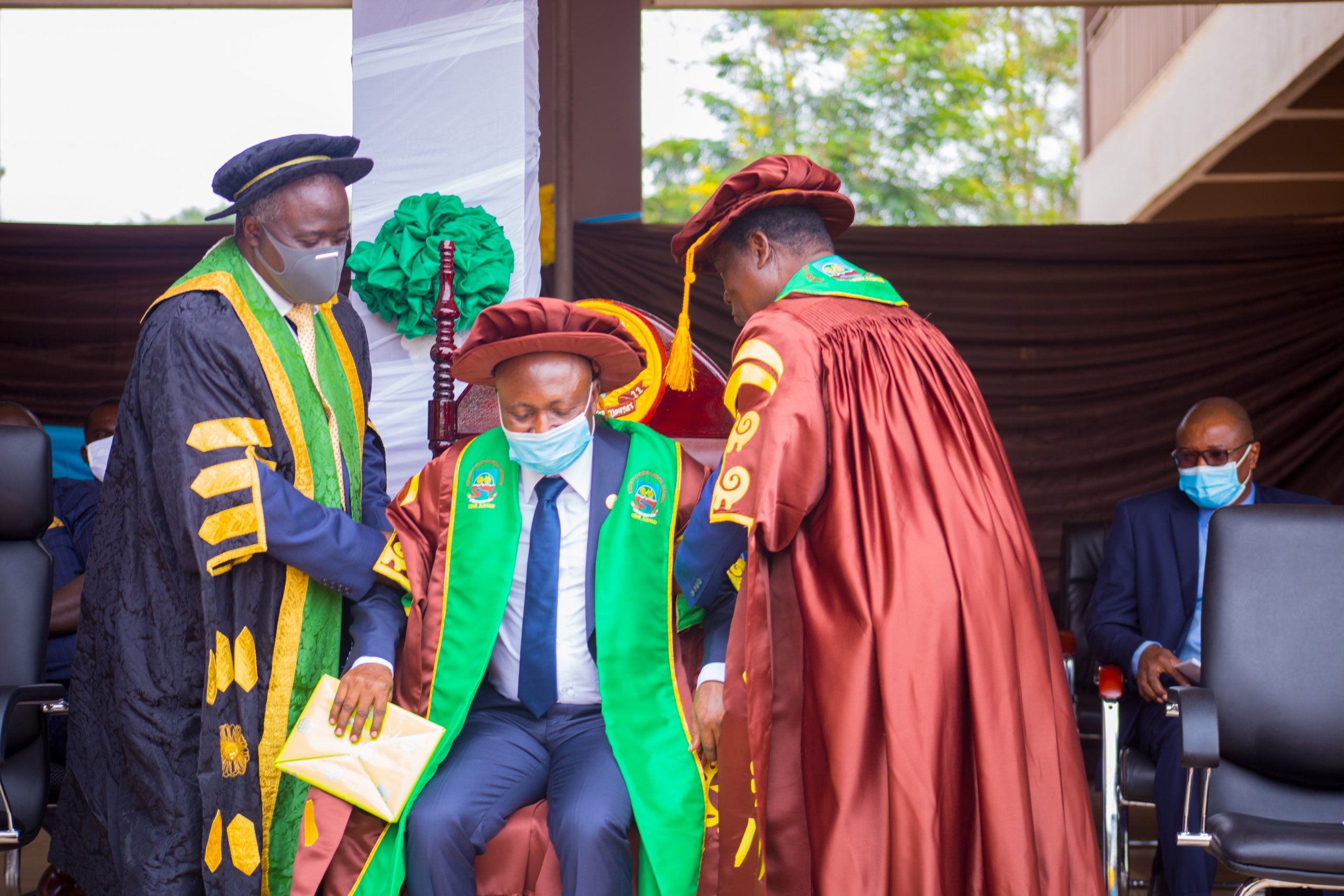 The Council Chairman, Professor George Kankam assisted by who stood in for the Minister of Education robed and enthroned Prof. Elvis Asare-Bediako as the new Vice-Chancellor.